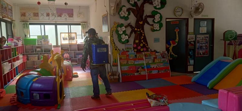 กิจกรรมฉีดพ่นอาคารสำนักงานเพื่อป้องกัน การแพร่ระบาดของโรคติดเชื้อไวรัสโคโรนา 2019