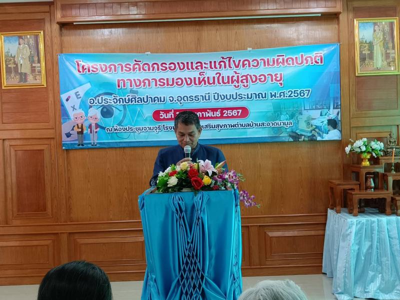 เข้าร่วมโครงการคัดกรองและแก้ไขความผิดปกติทางการมองเห็นในผู้สูงอายุ ต.ห้วยสามพาด ณ ห้องประชุมจามจุรีโรงพยาบาลส่งเสริมสุขภาพตำบลบ้านสะอาดนามูล ต.ห้วยสามพาด