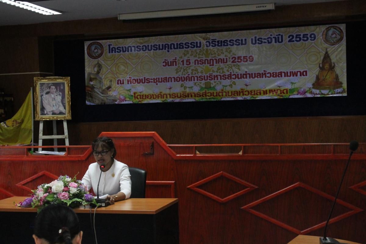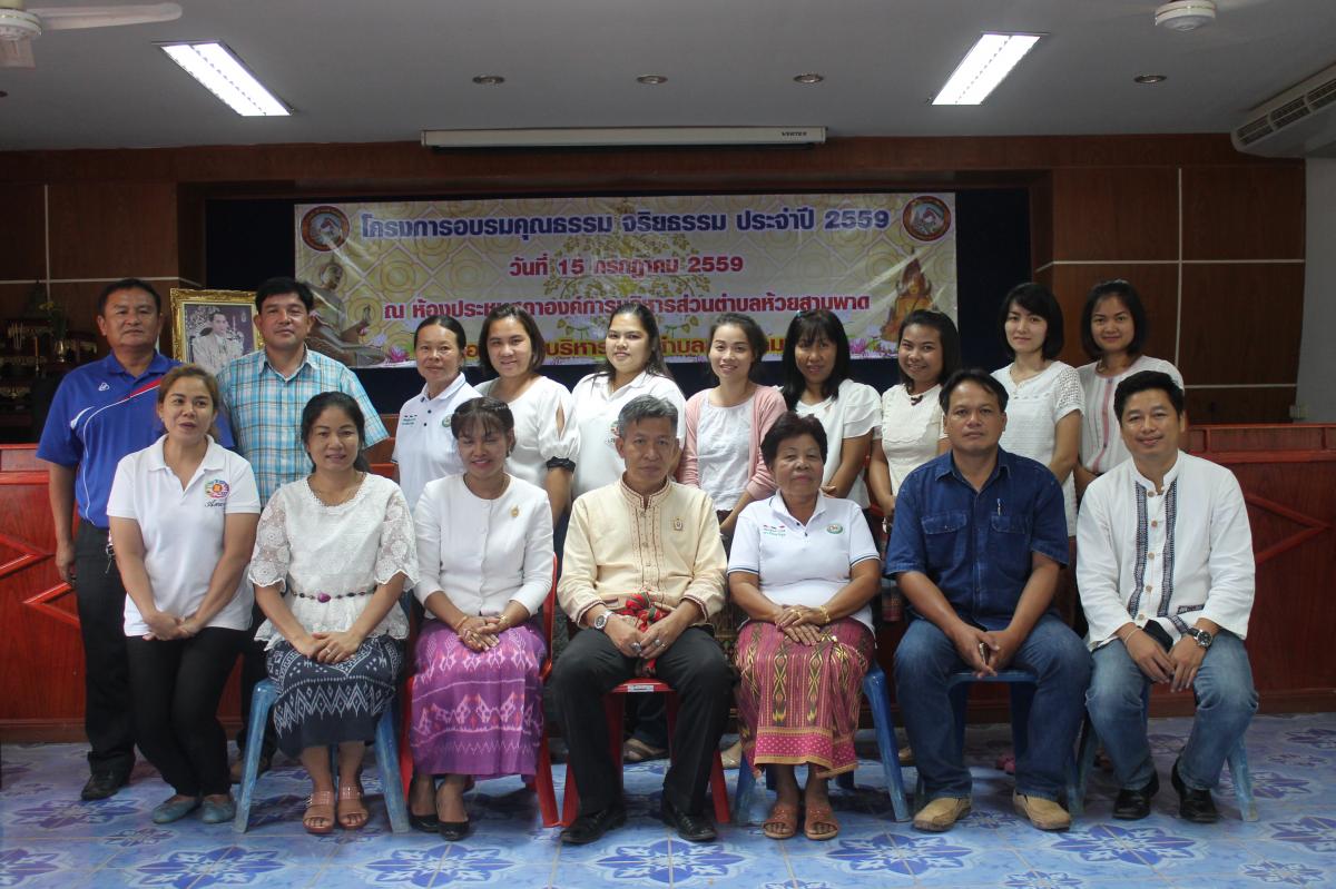 description เมื่อวันที่ ๑๕ กรกฎาคม ๒๕๕๙ ณ ห้องประชุมอเนกประสงค์องค์การบริหารส่วนตำบลห้วยสามพาด องค์การบริหารส่วนตำบลห้วยสามพาด ได้จัดทำโครงการอบรมคุณธรรมจริยธรรมของพนักงานส่วนตำบล ลูกจ้างประจำ พนักงานจ้างสมาชิกสภาองค์การบริหารส่วนตำบลห้วยสามพาด กำนัน/ผู้ใหญ่บ้าน เพื่อสร้างเสริมคุณธรรมและจริยธรรมของพนักงานส่วนตำบล ลูกจ้างประจำ พนักงานจ้างสมาชิกสภาองค์การบริหารส่วนตำบลห้วยสามพาด กำนัน/ผู้ใหญ่บ้าน ให้มีความรู้ ความเข้าใจ ในเรื่องของศีลธรรมและจริยธรรม สามารถนำมาใช้ในการปฏิบัติงานและอยู่ร่วมกันอย่างมีความสุข และเพื่อให้เกิดความรักสามัคคีภายในองค์กรและท้องถิ่นตำบลห้วยสามพาด person admin